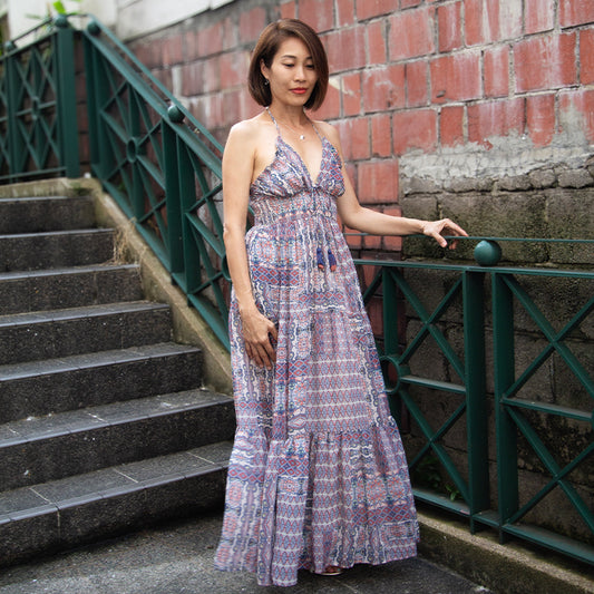 Dress Forum Mosaic Blue Halter Maxi Dress