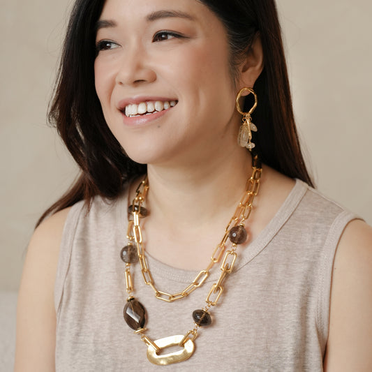 Velatti Peach Moonstone Earrings with Baroque Pearls