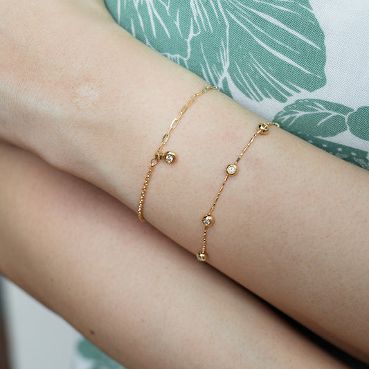 Dotted Gold and Freshwater Pearl Jade Donut 18k Gold Bracelet
