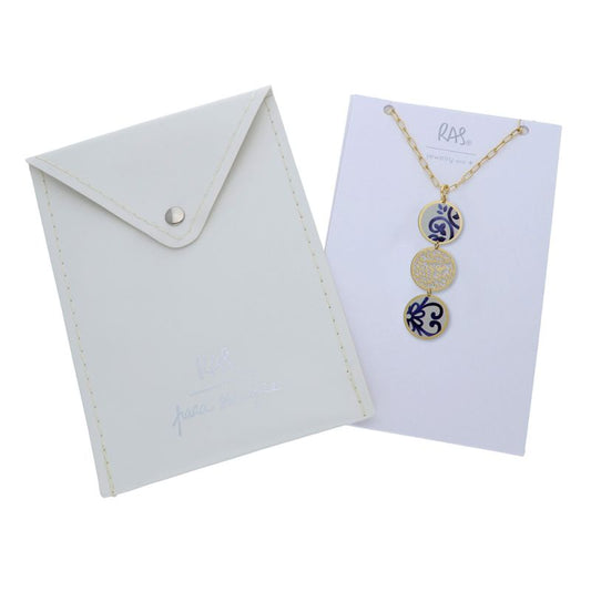 RAS Porcelana Azul Gold Short Pendant Necklace