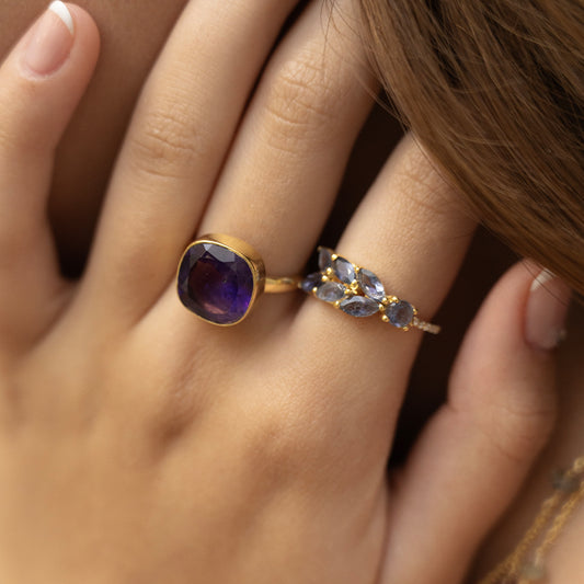 Twilight Rose Cluster Amethyst, Rose Quartz & Diamonds Ring