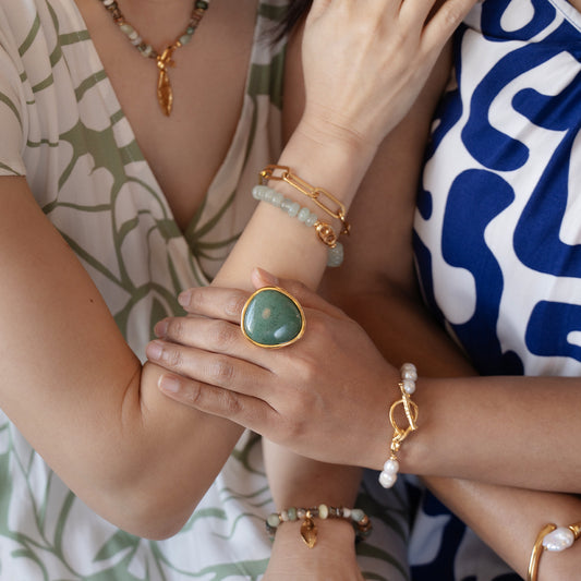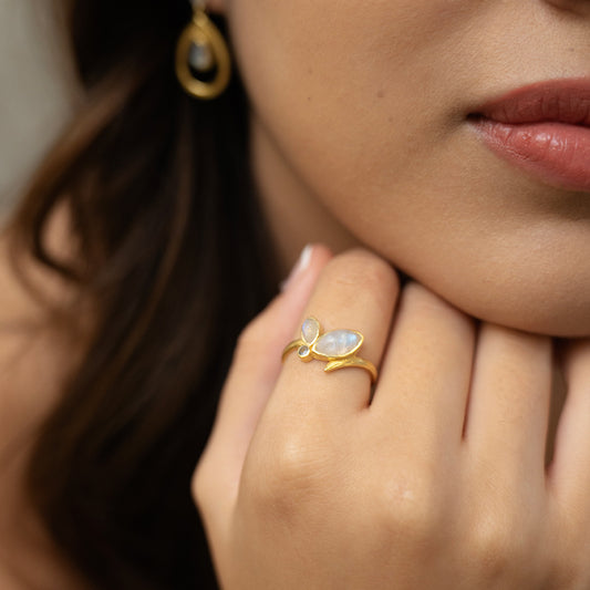 Ginkgo Leaf Wraparound Ring with Jade and Diamonds