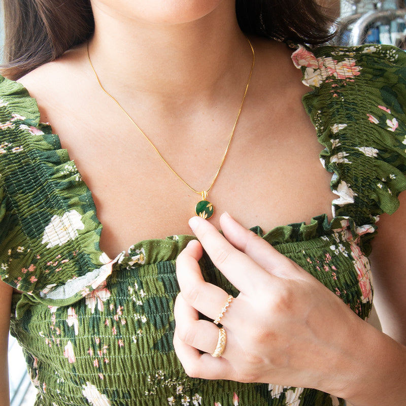 (PRE-ORDER) Bamboo Leaf Round Jade 18k Gold Pendant