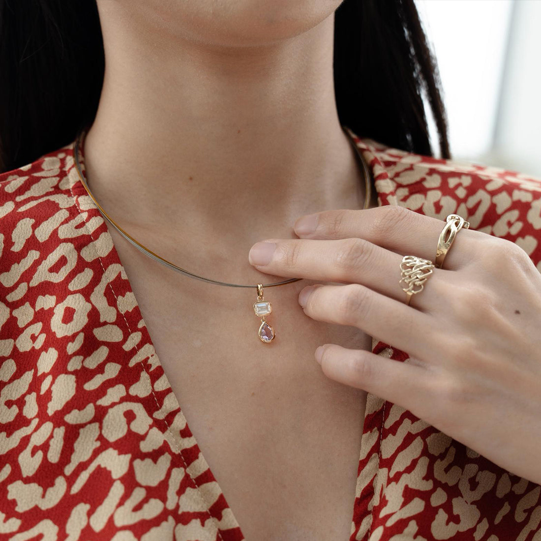 This necklace comes with a classic chain and can be paired with an optional wire choker for an additional $20. (refer to pic 5 & 6)