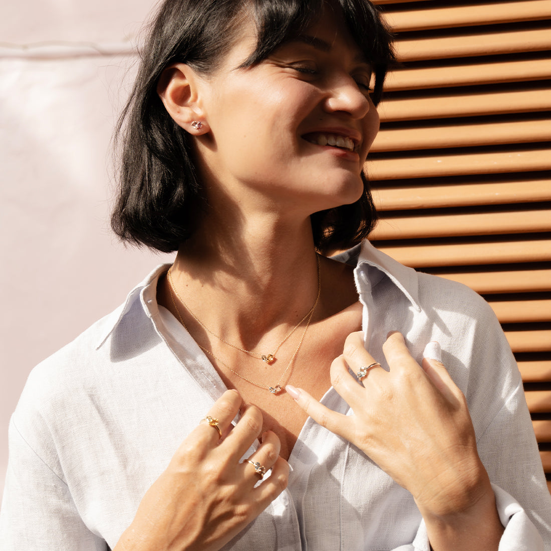 Meet your new everyday favourite! The Merge Necklace features a dainty heart pendant crafted from a pear cut aquamarine and a larger pear cut morganite paired together to form a sweet, modern heart silhouette. Light, dainty, and super wearable, this necklace brings a soft pop of colour to any outfit, from brunch days to date nights. The piece a subtle two-tone glow that catches the light beautifully. Set on a fine 14k gold chain, this piece is made to last. It’s the perfect gift for her, everyday necklace, or layering piece for your curated stack.