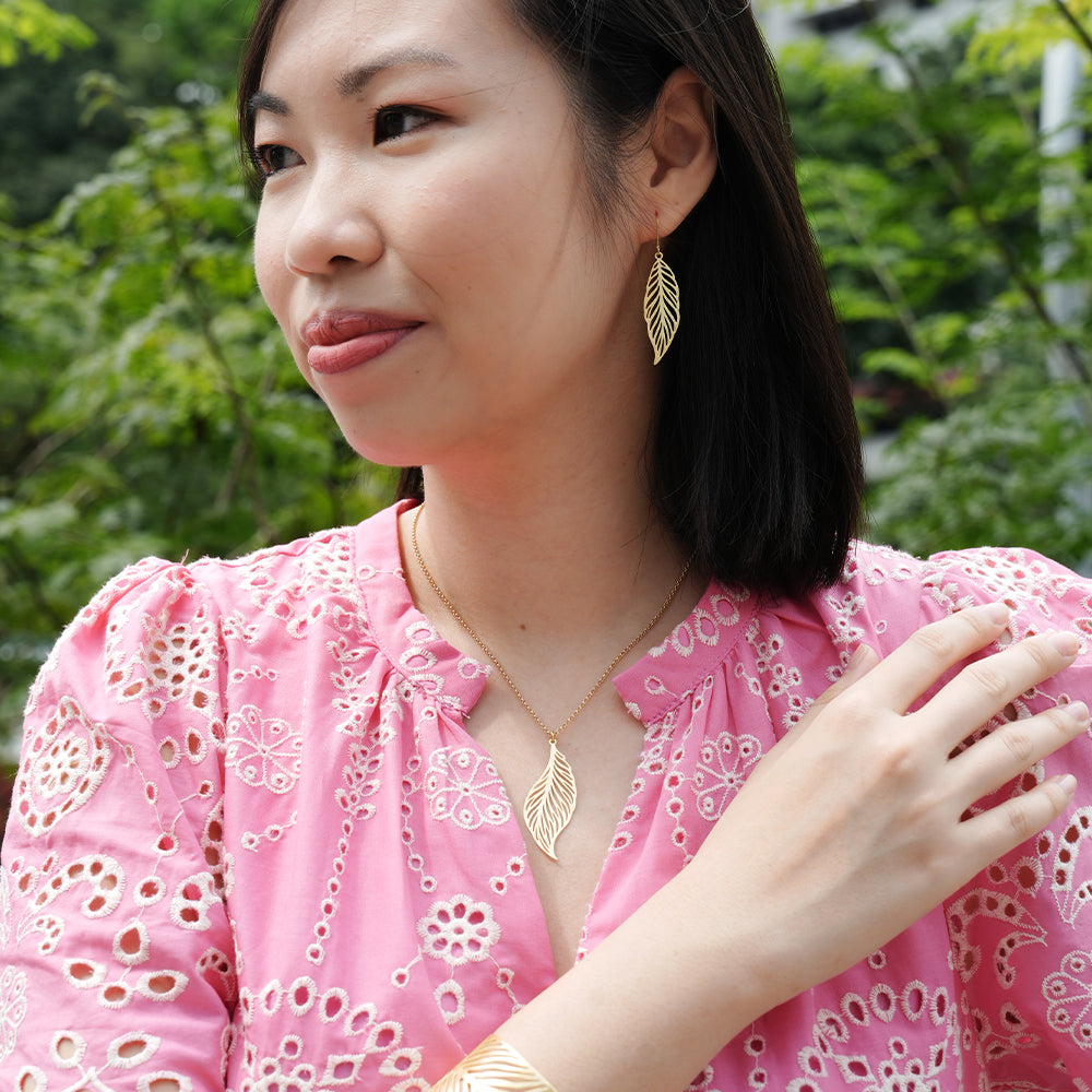 Bring a touch of nature to your look with the Pluma Earrings. Featuring a sculpted leaf shape with cut-outs and 925 sterling silver hooks. Crafted with 18k gold plating and a layer of anti-tarnish. Perfect for elevating everyday outfits or adding a natural-inspired statement to special occasions, these leaf earrings pair effortlessly with other gold jewellery or stand strong on their own.