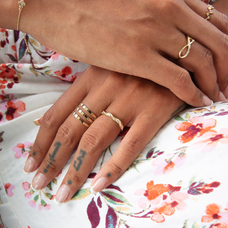 One to add to your everyday stack! This ring features a triple band design. Crafted in 10K solid gold, this ring is made to last. We love this minimalistic and sleek piece with other gold bands or worn solo for that touch of shine.