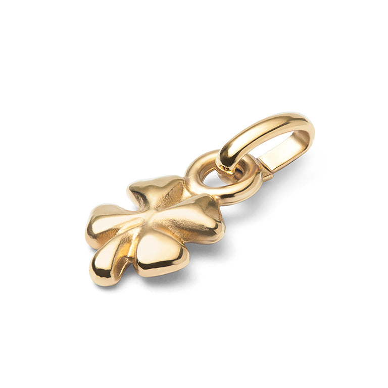Personalise your chain with this charm! This charm from UNOde50 is gold plated and features a puffy clover leaf. It can be hung on your dainty necklace or bracelet chains.
