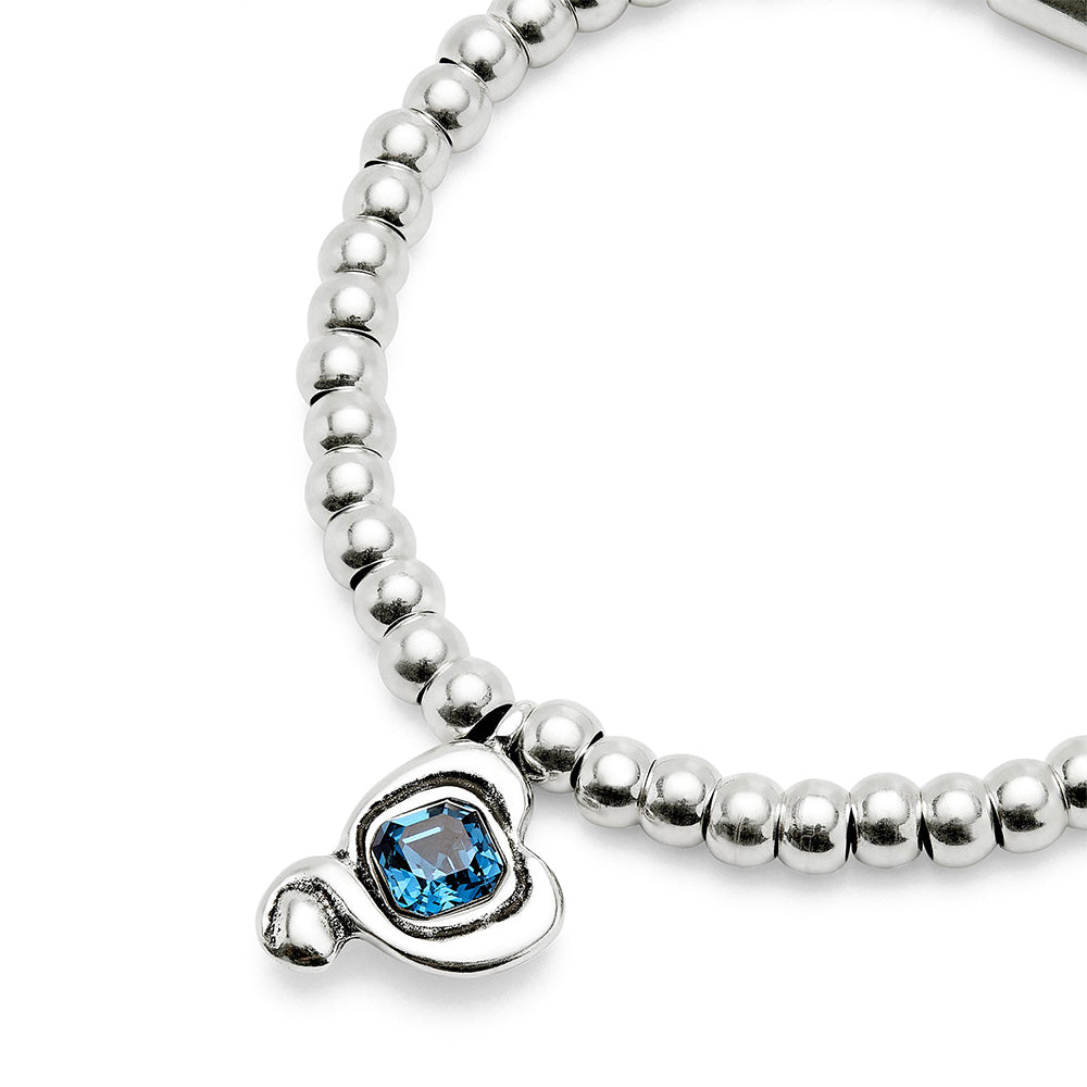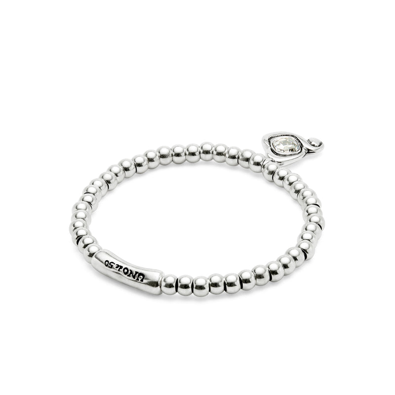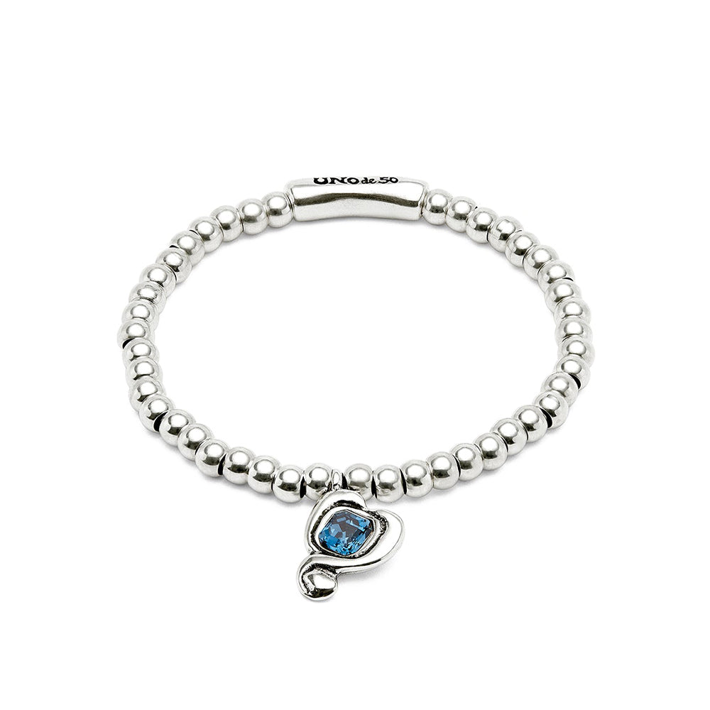 Wear your heart on your sleeve. This silver plated bracelet from UNOde50 is beaded elasticated bracelet with a swarovski crystal heart charm. Perfect for adding a touch of sparkle to your wrist or layer it with other silver bracelets for a cute stack.