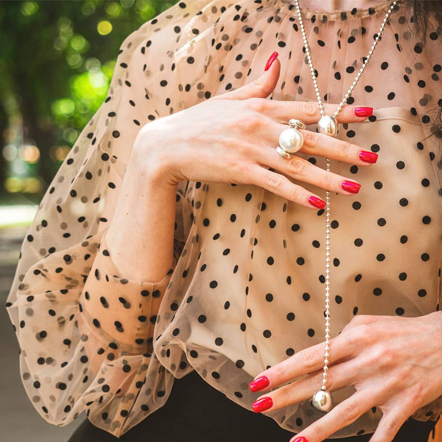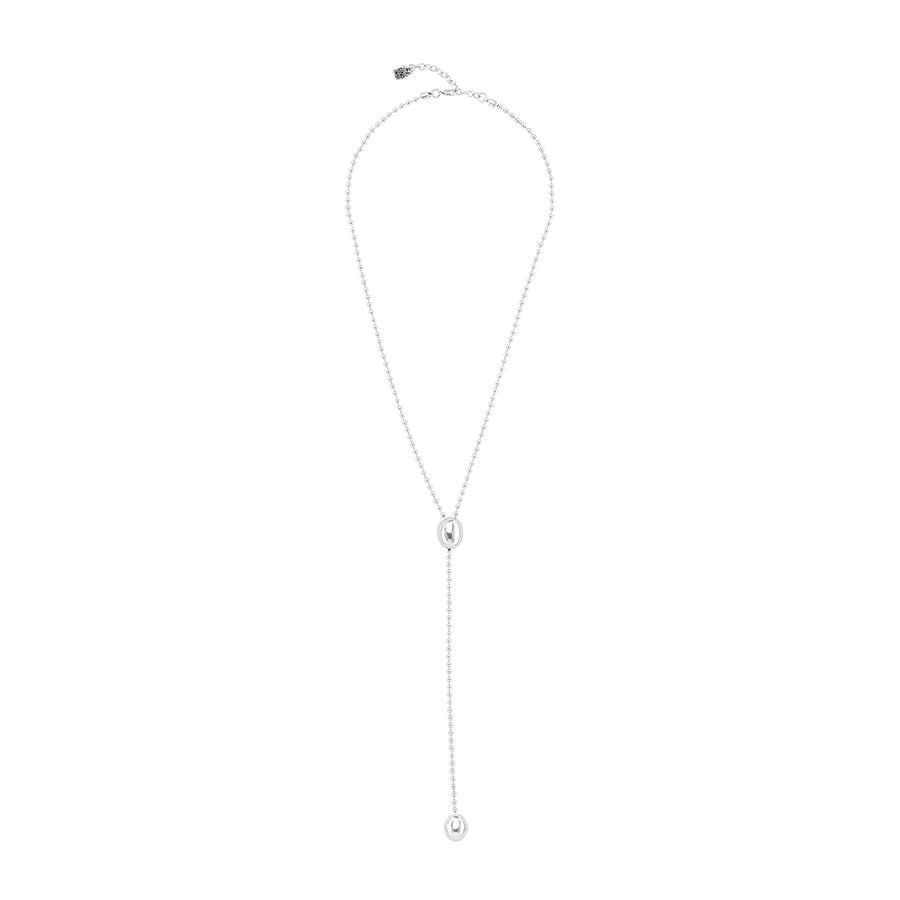 A minimal design with maximum impact! The Lonely Planet Necklace from UNOde50 has a lariat design featuring a ball chain design and pebble beads. This silver plated lariat necklace will take you from office hours to happy hour effortlessly.