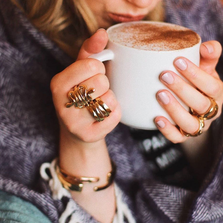 Inspired by the infinite islands of Indonesia, this statement ring features a ridged design with a cut out. Bold and geometrical, you'll be stacking the UNOde50 Maratua Island Ring on repeat!