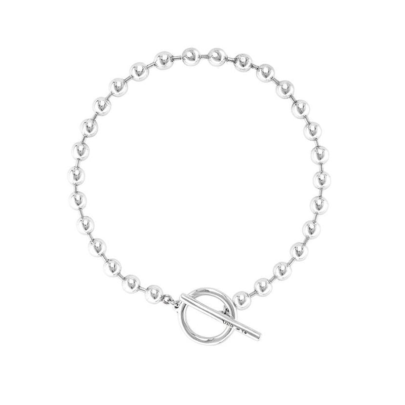 A minimal design with maximum impact! The On/Off Necklace from UNOde50 has an oversize ball chain design. With its toggle and ring closure, this silver plated necklace can be styled multiple ways. This chunky chain will take you from office hours to happy hour effortlessly.
