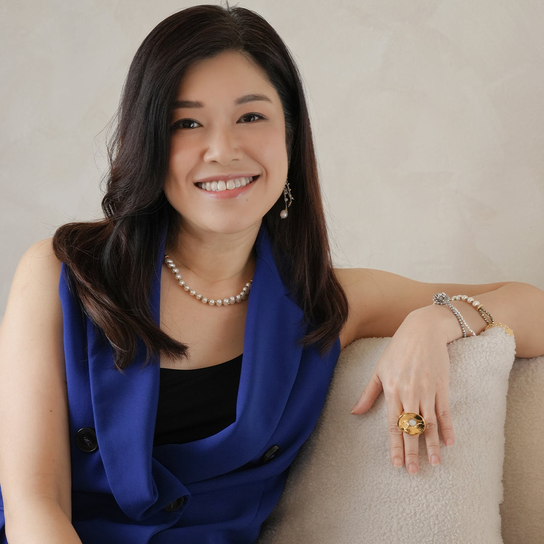 Pearl-fection! This short necklace from Velatti features a double strand of hematite and a row of freshwater pearls. We love it solo with wrap dress or layered with a longer pearl necklace.