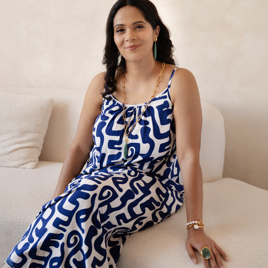 A bold statement! This 24k gold plated necklace from Velatti features a link chain with a large aquamarine stone and a lizard charm. Secured with a lobster clasp in the the front, hence can be worn multiple ways. We love it with a plain blouse and jeans, or teamed with a floral dress.